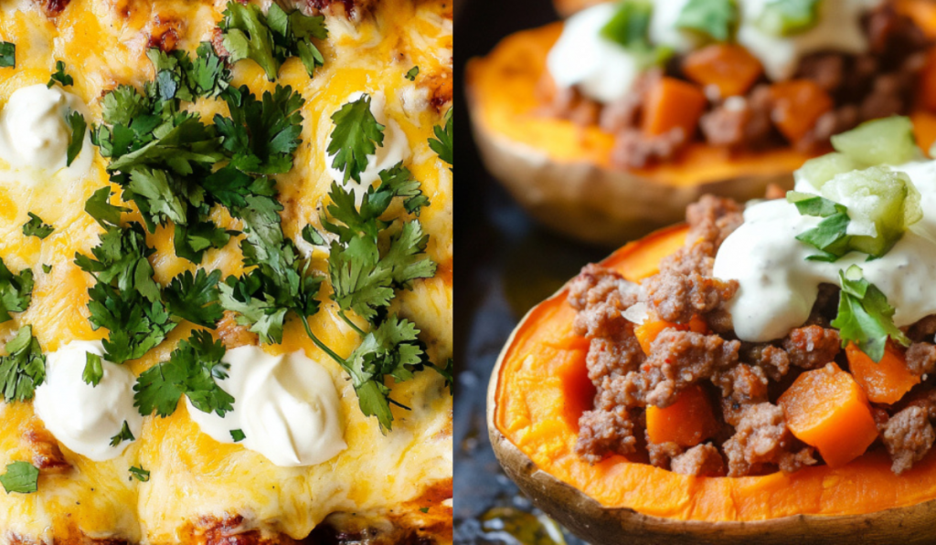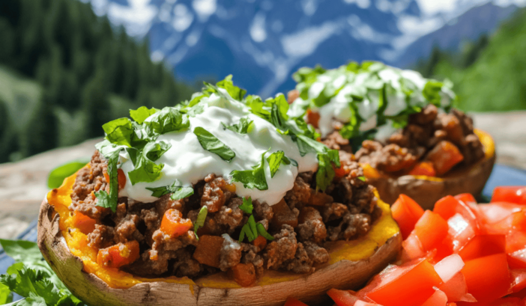 Ezek a töltött édesburgonyák ízek finom kombinációját tartalmazzák. Van benne sós fűszerezésű darált marhahús, citrusos salsa és édesburgonya.