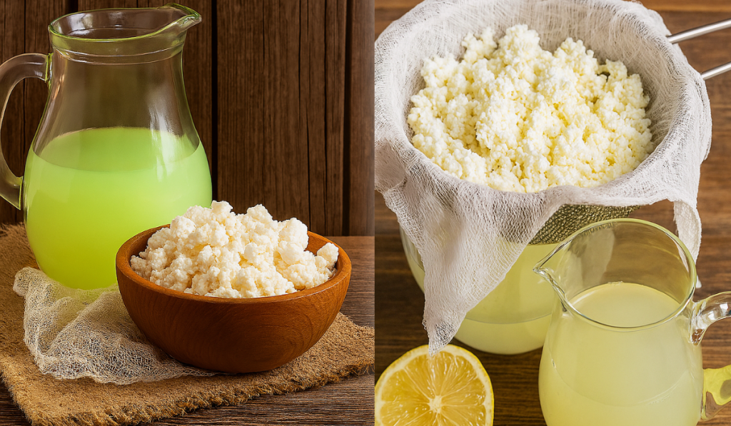 Forralj fel 1 liter tejet, hagyd kicsit kihűlni, ezután csavard hozzá egy citrom levét. Keverd össze, és hagyd állni, amíg ki nem csapódik a zöldes-sárgás savó rajta.