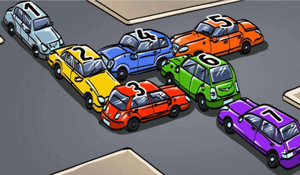 A fenti képen látható autók közül melyiknek kell először elmozdulnia? Ebben a rejtvényben egy forgalmi dugót kell feloszlatni, ami egy kereszteződésben alakult ki. A megoldáshoz elég, ha egyszeri autót elmozdítunk, és a többi máris folytathatja az útját. Azonban nem mindenki találja meg olyan könnyen a helyes megoldást.