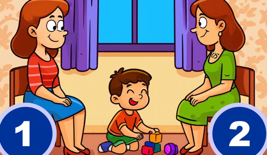 Amint azt a címből is tudod, a képpel kapcsolatban arra a kérdésre kell tippelned, hogy a két nő közül melyik is lehet a középen játszó kisfiú édesanyja. Ez most megint nem egy időzített játék, nem kell rohannod, gondolkozhatsz nyugodtan akármennyit. Aztán ha eldöntötted magadban, hogy ki lehet az anyuka, akkor görgess lejjebb.
